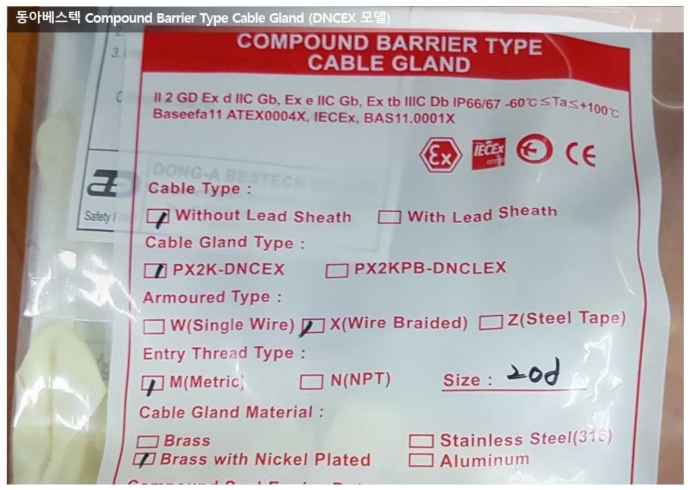 공급모델 : Compound Barrier Type Cable Gland (DNCEX 모델)