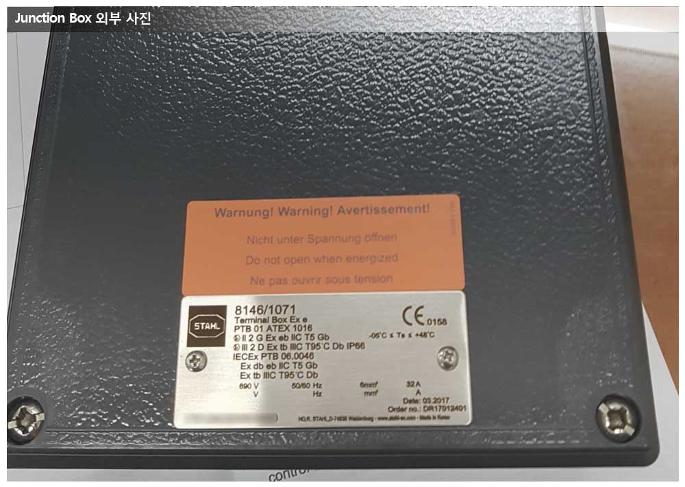 현대중공업, NASR프로젝트, R.STAHL사 Junction Box 페이지 정보 작성자 관리자 작성일17-04-24 14:55 조회20,924회 댓글0건 관련링크 이전글 다음글 목록 본문 공급품목 : R.STAHL JUNCTION BOX 상세사양 : 8146/1041, 8146/1051, 8146/1071 모델 특이 사항 : R.STAHL 의 국내 Workshop에서 가공하여 납기가 종전보다 4~6주정도 단축되었습니다. 댓글목록 등록된 댓글이 없습니다. 이전글 다음글 목록